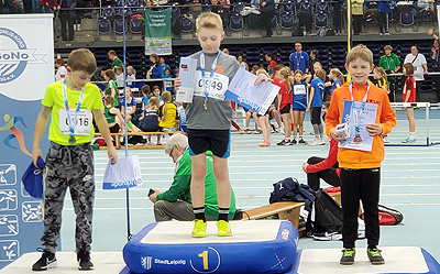 Die Quarterback Immobilien Arena Leipzig lud ein und 11 Sportler aus Hartha versuchten ihr Glück im Kampf um Medaillen. Das klappte am Vormittag schon recht gut. Im Weitsprung der m9 setzten gleich 3 Athleten einen Sprung von 3,53m in die Grube. So musste der zweitbeste Versuch über die Podestplatzierungen entscheiden. Henri Fritzsche hatte mit 3,47m knapp das Nachsehen gegenüber den 3,51m des Siegers. Andreas Thiel belegte mit 3,04m den 13.Platz. Der Weitsprung war noch nicht beendet, da holte Hugo Massner in der männlichen u20 noch eine Silberplakette. Seine Zeit über 1.000m betrug 2:46,66min. Wenig später konnte Henri im 50m Sprint nachlegen. Er gewann seinen Lauf mit 8,27s. Dies reichte nach Abschluss aller 6 Zeitläufe zur Bronzemedaille. Andreas kam nach Auswertung der Läufe auf Rang 14. Otto Späth konnte anschließend mit neuer persönlicher Bestleistung von 8,98m im Kugelstoßen der m12 einen fünften Platz erringen. Im Hochsprung kam Annika Sommer nach den erfolgreichen Vorwochen diesmal nicht so richtig zurecht und belegte mit 1,50m Rang 6. Louisa Bohnstedt erzielte mit 1,55m eine neue Bestleistung und errang damit Platz 4 bei den Frauen. Im Weitsprung der w15 konnte sich Annika dann noch über eine Bestleistung freuen. 4,32m bedeuteten Platz 10. Auch Hanna Thierbach erzielte in diesem Wettbewerb eine neue persönliche Bestmarke mit 4,50m und kam damit auf Rang 6 ein. Damit fehlten ihr nur 3cm zu Bronze. Anschließend ging sie gleich zum Kugelstoßen und dort klappte es dann mit dem Siegerpodest. Für 9,39m bekam sie Silber überreicht. Zur besten Abendbrotzeit lief Otto noch die 60m Hürden. Mit Platz 2 im zweiten von 3 Zeitläufen wurde er am Ende Vierter. Gleichzeitig fand der Weitsprung der w13 statt. Dort war Neele Flemming unsere Beste. Mit 4,02m belegte sie Rang 13. Anna Späth kam mit persönlicher Bestweite von 3,71 auf Platz 20 und Juliane Haupt wurde Sechsundzwanzigste. Mit ihrem 800m Lauf um 20.20 Uhr beendete Neele einen für die Harthaer langen Wettkampftag. Sie wurde in 2:41,81min Vierte.